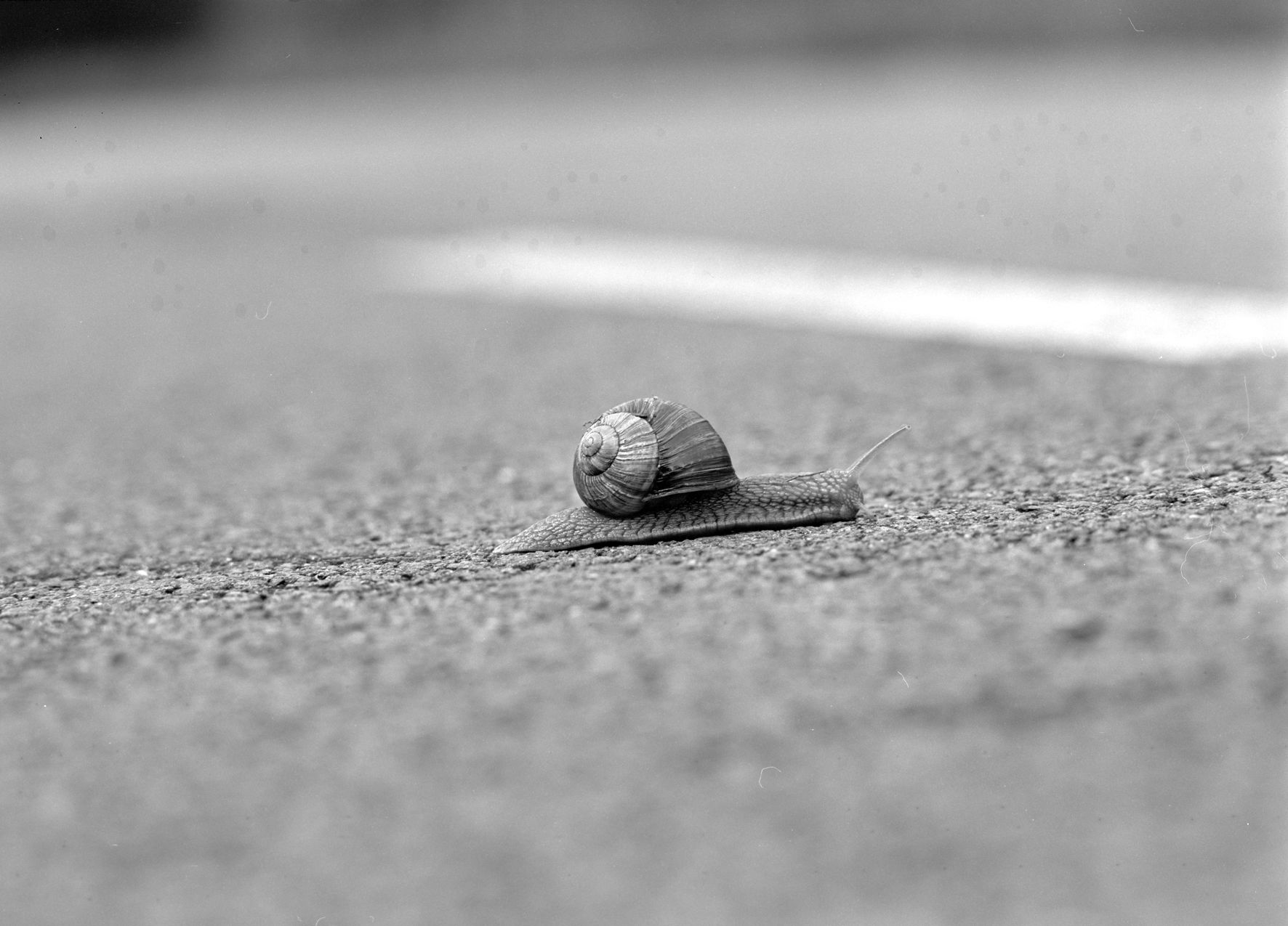 Šnek je na focení ideální tvor. Než se vzdálí z dohledu, stihnu si Bestii pořádně nachystat, v klidu kompozitovat, ostřit, štelovat, a hle! Šnek!