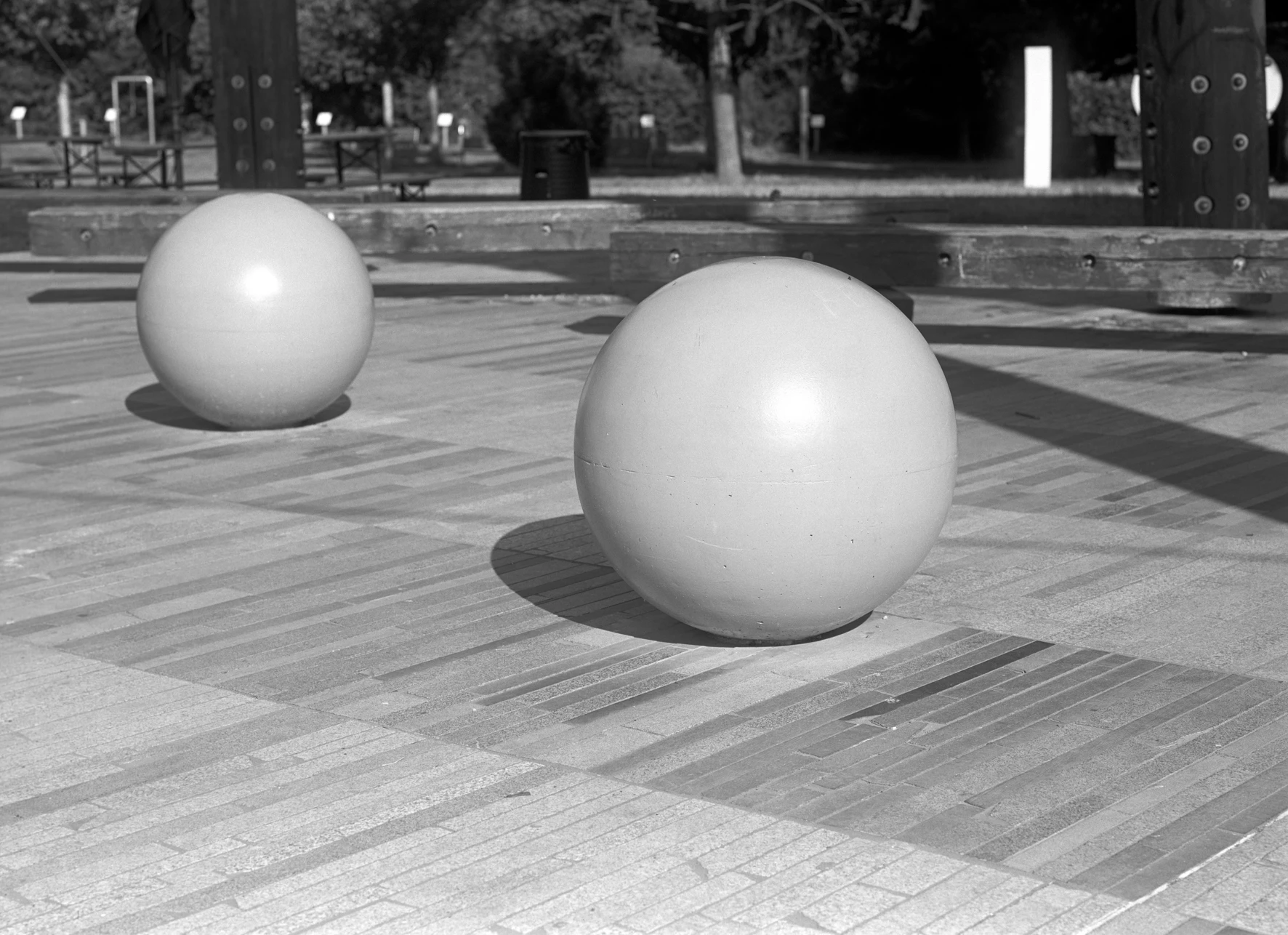 Betonových koulí je v Malešickém parku spousta. Tady jsou dvě z nich, které jsem si vybral, protože se mi líbí. Mně stačí málo...